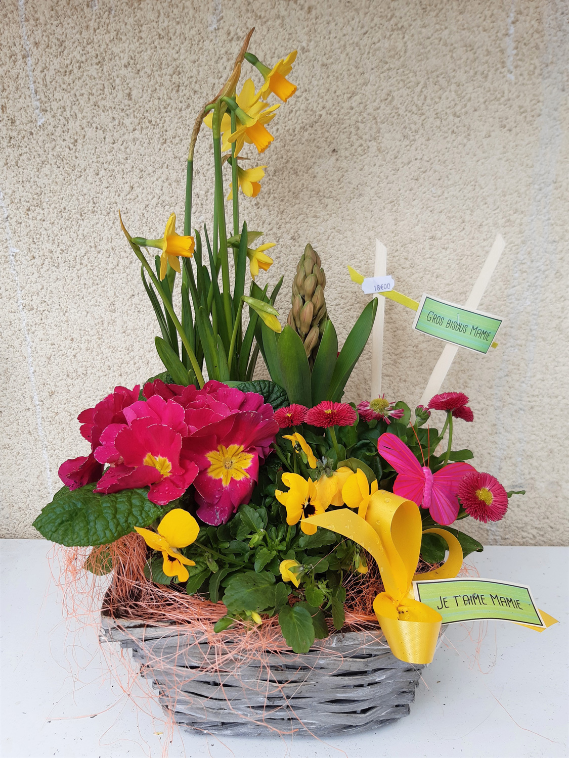 Une jolie composition de 5 plantes dans une coupe. Composée de plantes qu’on peut replanter au jardin après, mamie sera ravie de son cadeau !